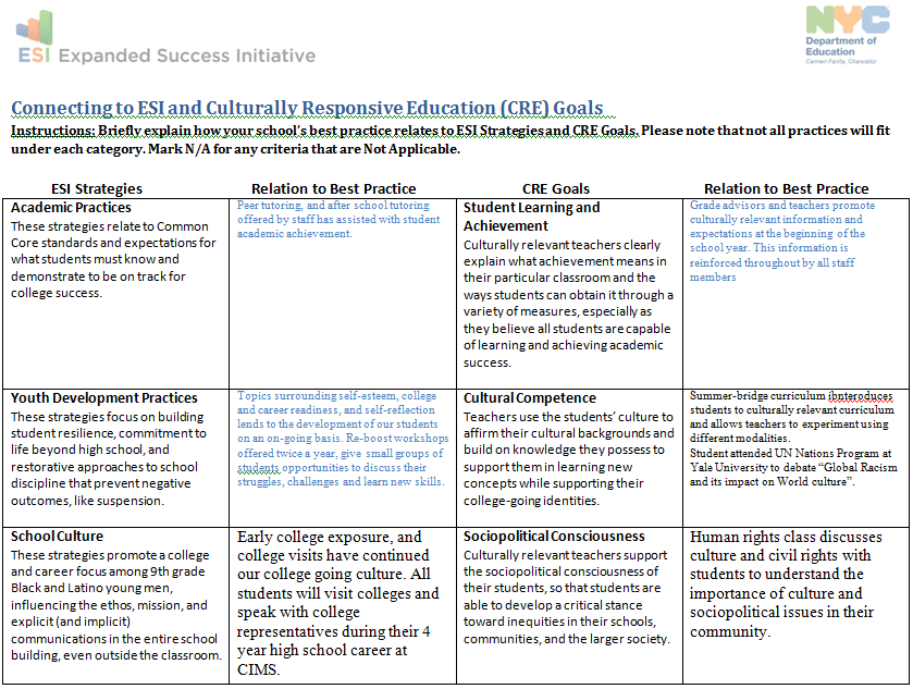 The ESI Cohort consist of both freshman and sophomore African American and Latino male students. There are approximately 207 students aged 13-15.