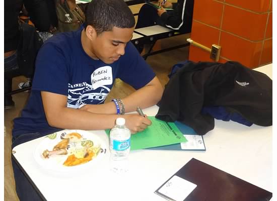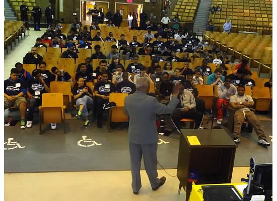The young men then had the opportunity to choose two-50 minute workshops from a list of over fifteen. Students choose such topics as: Knowing your Rights, Success in the Box, How to Succeed in College, Having a Back Up Plan and Writing for Life. The topics spanned the areas of academic development, school culture and youth development. Some of the presenters were from the NYPD, Channel View alumni, ESI, Millennium Development, Hip Hop 4 Life, International Leadership Institute, (IYLI), former professional athletes and other school community based partners.