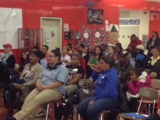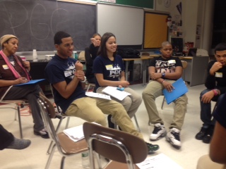 After the skit, parents were ushered into different rooms for peer facilitated fishbowls in which parents and young people got a chance to participate in answering questions they often ask of each other as well as issues young people face in their lives. The process created a safe environment in which young people could share their opinions, questions, and insights with each other and in turn, parents were invited to do the same. Even Mott Hall Principal, Kathryn Malloy, participated. It was an impressive demonstration of young people’s capacity to support each other when supported and trained by caring adults; members of the Mott Hall Bronx staff manage the implementation of the PGC program at the school.